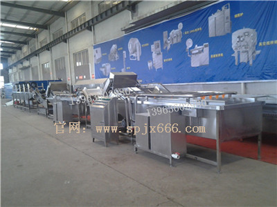 根莖類一條線工藝:分揀輸送機(jī)—毛刷清洗去皮機(jī)(土豆)另外加一臺毛輥清洗機(jī)(胡蘿卜)--提升輸送機(jī)—氣泡清洗殺菌機(jī)—噴淋清洗機(jī)—切菜機(jī)—雙層輸送帶—保鮮處理機(jī)(土豆)--風(fēng)干瀝水機(jī)—包裝輸送線