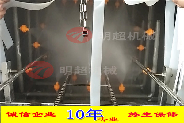 3.該機是通過三個蓄水箱、不銹鋼水泵、噴淋管道、可拆卸噴嘴、電機等組成,全自動控制,操作簡單,只需要兩個人就可進行操作,節(jié)省人工,節(jié)省水,提高工作效率。為企業(yè)實現(xiàn)了自動化生產(chǎn)。