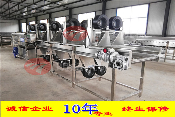 5. 根據要求,可選擇離心甩干機(離心甩干機不容易進行流水線作業(yè)),或者風干瀝水機(適宜流水線操作), 能有效將果蔬內外的水分吹干或者烘干,具體還要根據用戶需求,為您量身定制。如果風干的果蔬當中,有怕容易損傷表皮的,就要使用平行風干機,是采用一整條的網帶進行輸送風干。