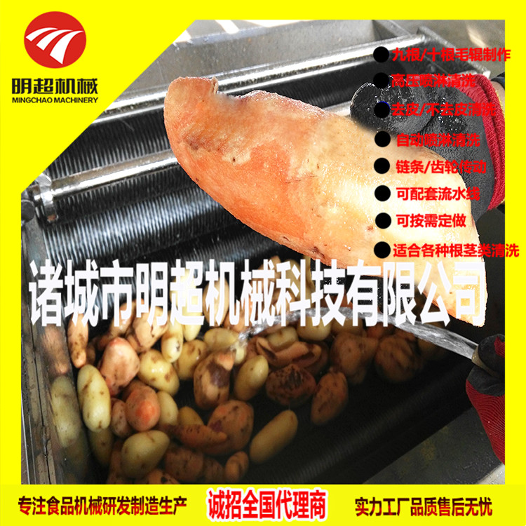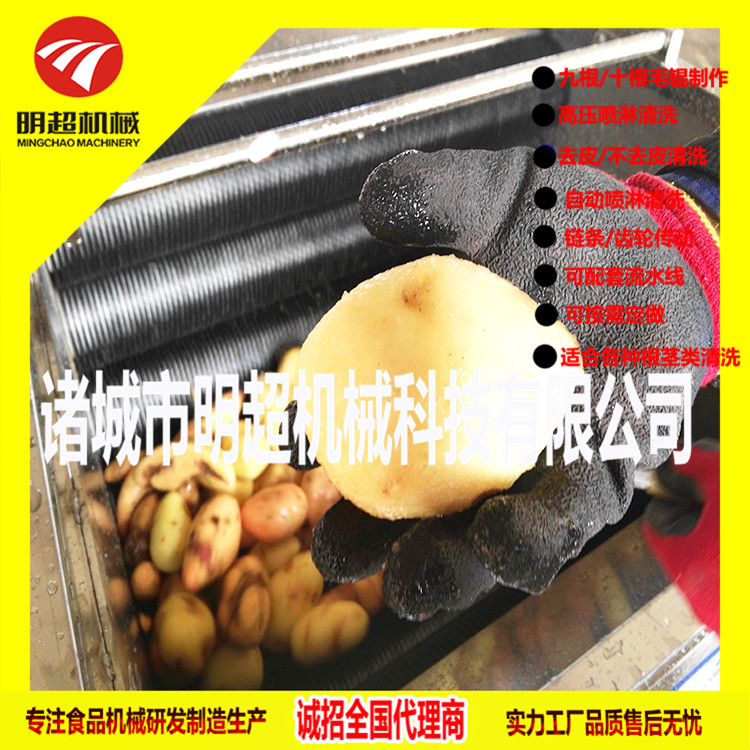 蔬菜分為根莖類和葉菜類,那么在這些根莖蔬菜和葉類蔬菜里面,一種蔬菜清洗機(jī)能全部清洗嗎?這是很多前來(lái)咨詢客戶的心聲,都想讓設(shè)備做到完好,什么蔬菜都能清洗,這個(gè)我想大家心里都有數(shù),有這個(gè)想法是好的,當(dāng)然,在這里,也要看客戶的需求,晨熙機(jī)械可以根據(jù)客戶的要求,為您單獨(dú)定制清洗設(shè)備,那么在這里就介紹一下根莖類的蔬菜清洗機(jī),顧名思義根莖類的蔬菜就是針對(duì)土豆、紅薯、蓮藕、山藥、中藥材、胡蘿卜、番薯、芋頭等等進(jìn)行去皮或者不去皮清洗,這些要求都是根據(jù)客戶的需求生產(chǎn)的,根莖類去皮清洗的話,需要用同一種設(shè)備,但是毛輥的硬度要高,能將根莖類的蔬菜皮磨掉,再通過(guò)高壓噴淋管道進(jìn)行清洗,如果只是單純的清洗根莖類的,需要看物料上面的泥土是新鮮的還是堅(jiān)硬的,如果是堅(jiān)硬的,需要在根莖類毛輥清洗機(jī)前面加上浸泡機(jī),通過(guò)浸泡將根莖類蔬菜上面的泥土松軟,再通過(guò)網(wǎng)帶輸送到毛輥清洗機(jī)上面,這樣毛輥去皮清洗機(jī)就相對(duì)于簡(jiǎn)單了。后續(xù)可配套提升機(jī)→風(fēng)干瀝水→切絲塊機(jī)→漂燙機(jī)→冷卻機(jī)→脫水→烘干或者包裝