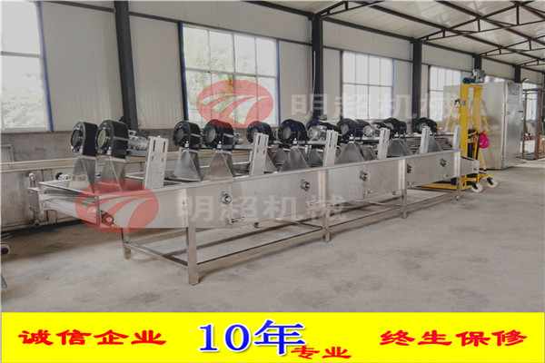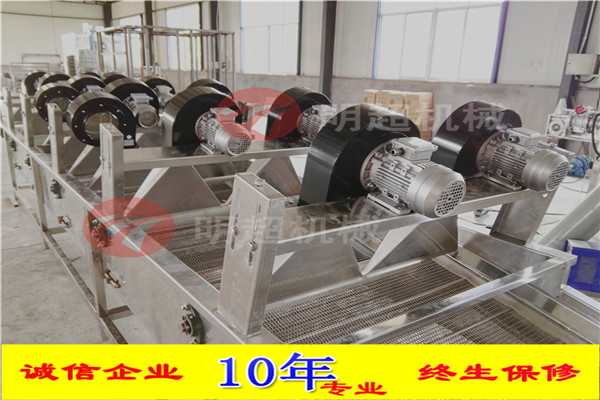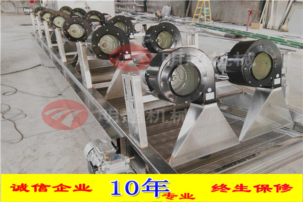 6.通過風(fēng)刀將自然風(fēng)轉(zhuǎn)換成強(qiáng)流風(fēng)。風(fēng)干機(jī)輸送網(wǎng)帶設(shè)計(jì)為多次翻轉(zhuǎn)輸送,確保產(chǎn)品兩面除水效果,風(fēng)干機(jī)吹干效果良好 設(shè)備采用變頻輸送,速度可調(diào)輸送平穩(wěn)。