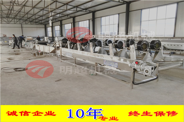 采用全自動控制,通過多次翻轉(zhuǎn)將桑葉菜表面的水滴去掉一部分,風(fēng)溫為常溫風(fēng),大風(fēng)量風(fēng)機,根據(jù)客戶吹干水分的的要求,可采用風(fēng)刀式形成進(jìn)行除水,物料在網(wǎng)帶上往前輸送,通過風(fēng)機除去表面的水滴,達(dá)到客戶要求的效果。采用鏈板式網(wǎng)帶