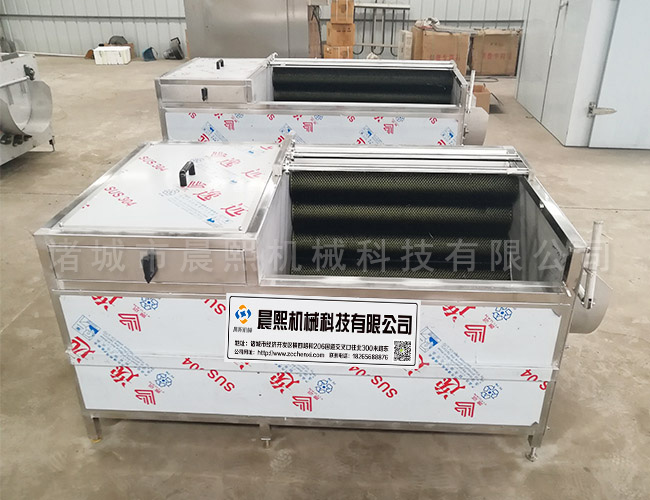 采用刷洗、噴淋技術(shù)和毛輥摩擦噴淋,通過毛刷并排往一個(gè)方向滾動,使物料滾動到出口的位置,對物料進(jìn)行清洗,毛刷對物料的褶皺部分進(jìn)行清洗,清洗效果明顯,是利用水的相互沖擊原理,使物料呈上下左右翻滾狀態(tài),在水的作用下達(dá)到去皮的目的,出口處配有噴淋裝置經(jīng)過二次沖洗,在清洗槽的上方有溢水口,漂浮物可以從溢流槽溢出,下方留有排污口,沉淀物可從排污口排出,達(dá)到透徹清洗的目的。分為去皮式的清洗和不去皮清洗的形式。根據(jù)實(shí)際的需要來選擇清洗的方式。毛刷的軟硬來決定土豆是否去皮。利用毛刷的轉(zhuǎn)動摩擦清洗土豆,土豆去皮清洗機(jī)硬質(zhì)的毛刷摩擦可以將土豆的皮摩擦去掉,摩擦清洗只是對土豆的表皮摩擦清洗干凈,不會損傷土豆的肉質(zhì)。設(shè)計(jì)為正轉(zhuǎn)和反轉(zhuǎn)兩種形式,清洗完畢后可以利用毛刷的轉(zhuǎn)動將土豆旋轉(zhuǎn)出料