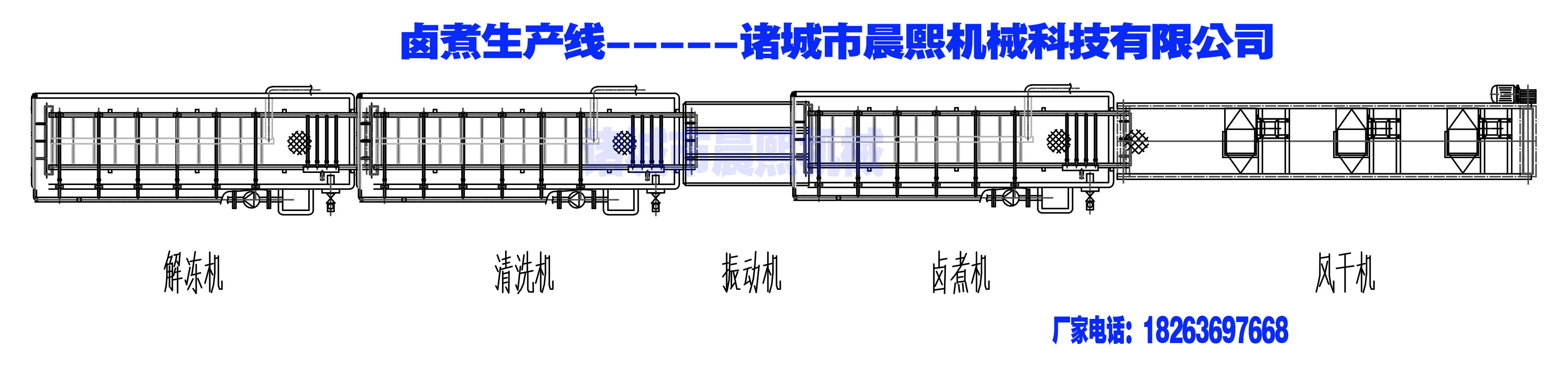 整雞解凍鹵煮生產(chǎn)線 蒸煮鹵制加工流水線工藝流程示意圖示意圖,可根據(jù)客戶生產(chǎn)能力確定用多大尺寸的設(shè)備,并免費(fèi)提供技術(shù)支持